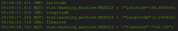 By default, Tasmota is configured for Paris, France, with the coordinates being directly on the Eiffel Tower.
